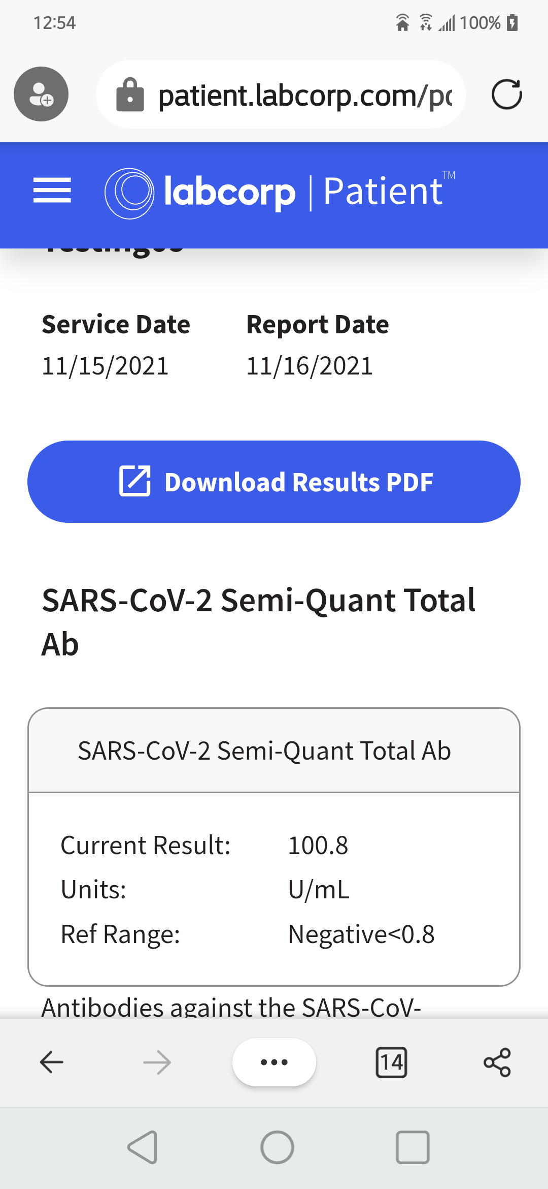 One year later, my spike RBD antibody is still positive. My COVID T-cell tests are pending. I will post when I receive them.